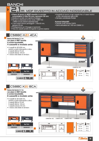 • Piano di lavoro in MDF rivestito in acciaio • Possibilità di inserire in ogni cassetto fino a 4 vassoi morbidi